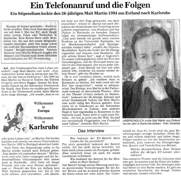 Aus: Badische Neueste Nachrichten (BNN) vom 28. Mai 2004